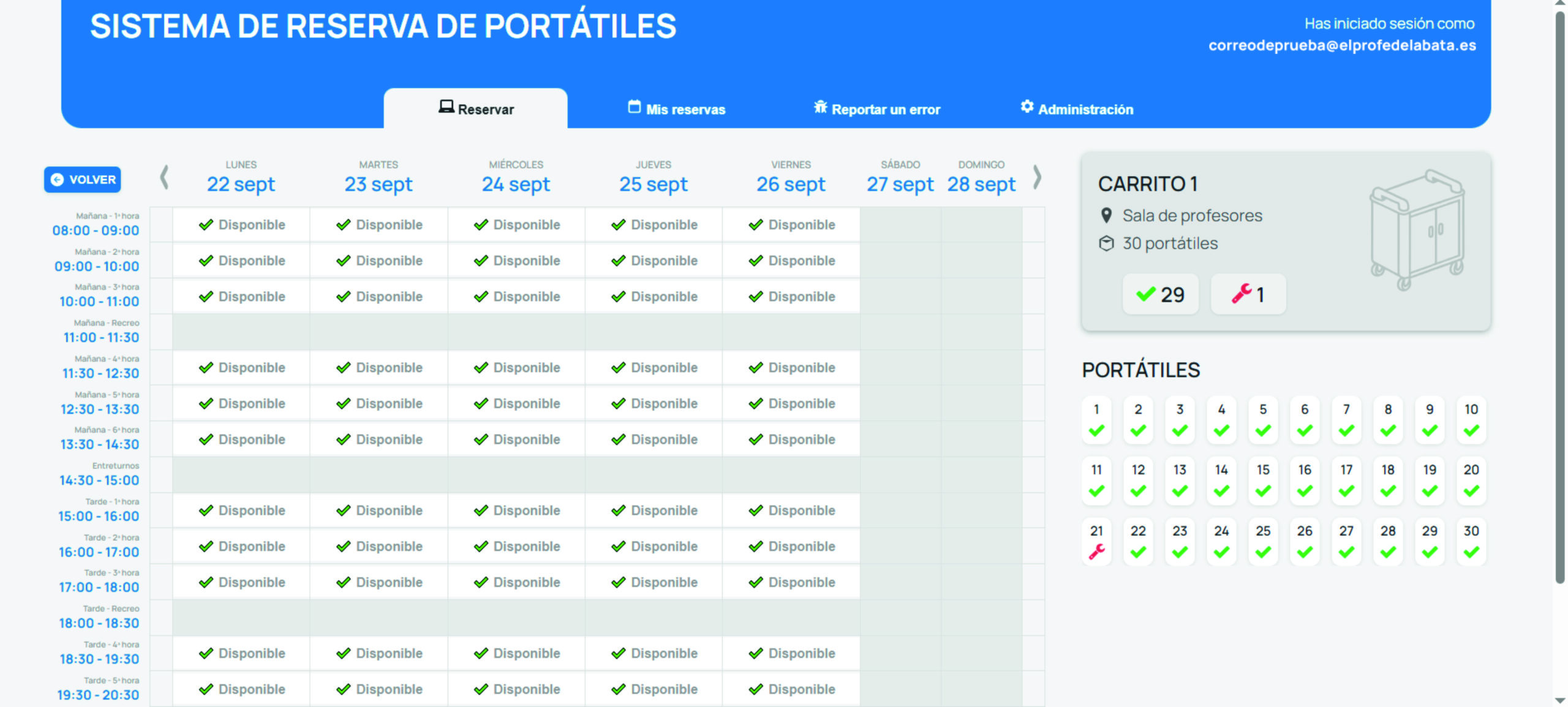 - Reservas en línea de carritos completos o portátiles sueltos.