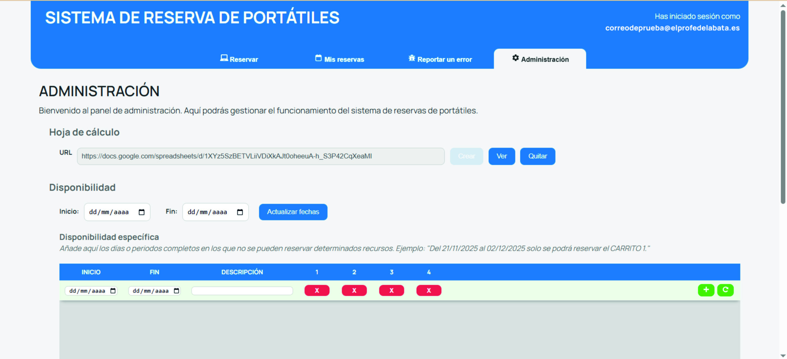 - Panel de administración que permite configurar periodos de disponibilidad, carritos y tramos horarios.